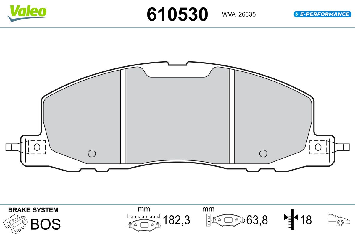 VALEO Bremsbelagsatz, Scheibenbremse 610530 vorne rechts links für FORD USA BRF1-8801-X L1MZ2001A L1MZ-2001-A