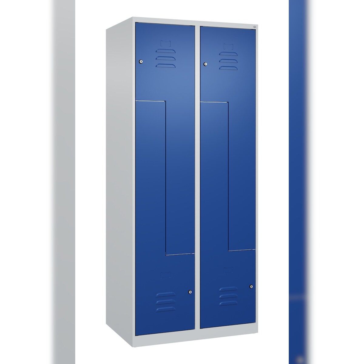 C+P Z-Spind Classic PLUS bodenstehend, 4 Abteile, HxBxT 185x80x50cm, Zylinderschloss, Hellgrau/Enzianblau von PROREGAL