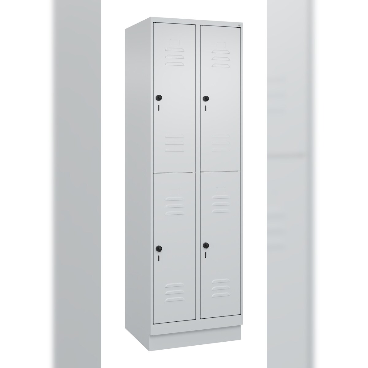 C+P Spind Classic PLUS, Sockel, 4 Abteile, HxBxT 195x60x50cm, Sicherheitsdrehriegel, Verkehrsweiß von PROREGAL