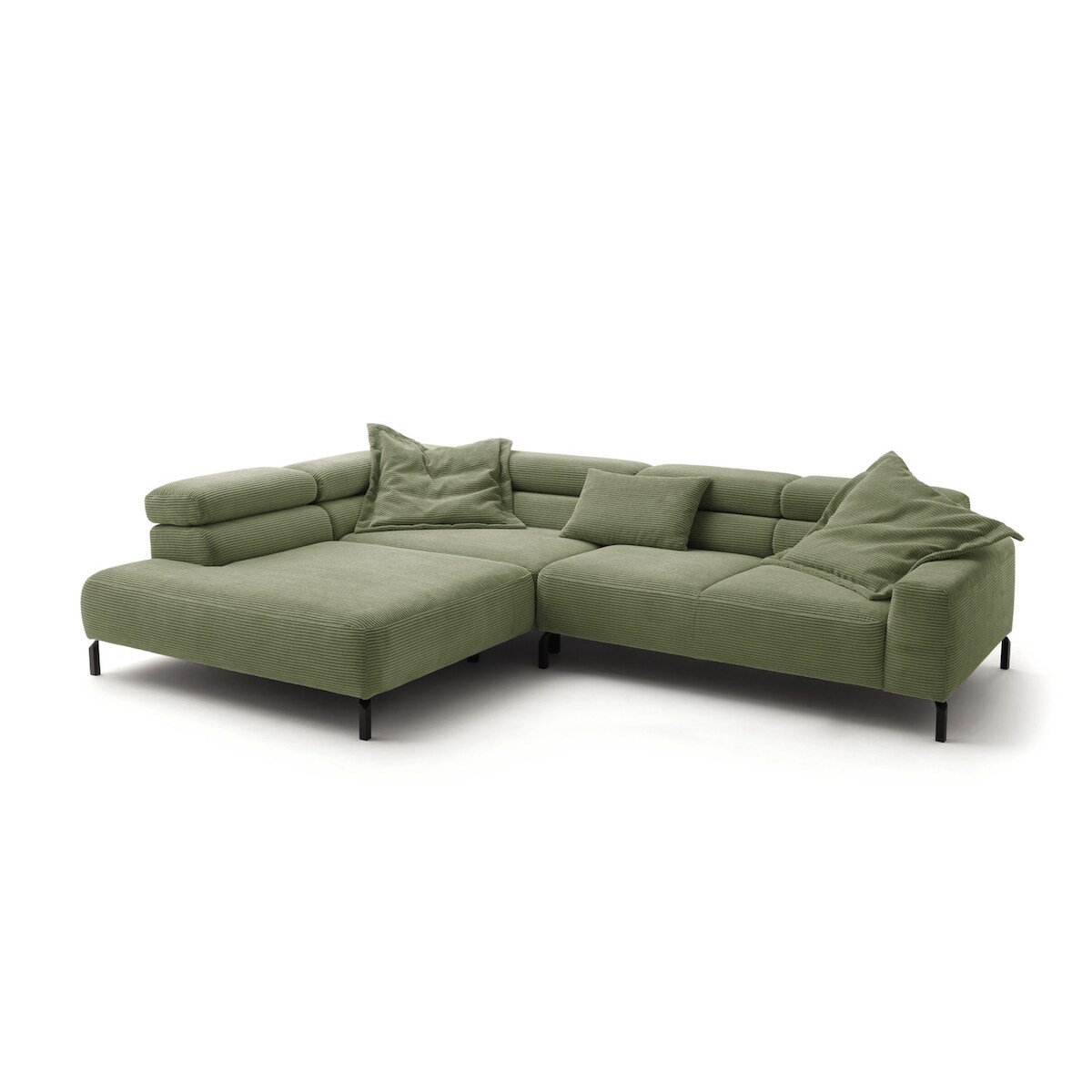 KAWOLA Sofa DELIA Ecksofa Cord olivgrün mit motorischem Sitzvorzug Recamiere links