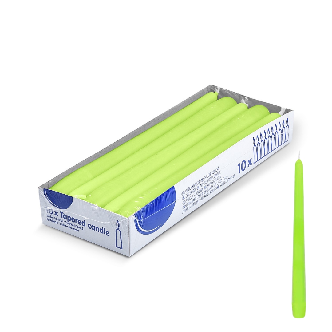 DeinPack 10 Spitzkerzen - Gelbgrün - Dekorative Haushaltkerzen - Brenndauer 8 Stunden