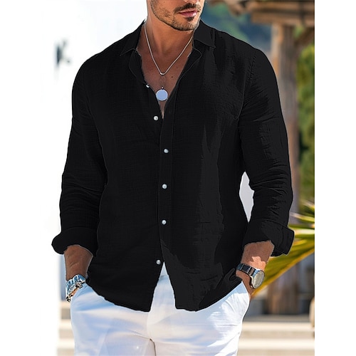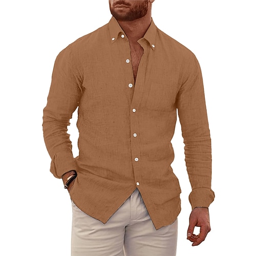 Per uomo Camicia camicia di lino Camicia estiva Abbigliamento mare Tinta unica Strada Hawaiano Verde militare Nero Bianco Arancione Manica lunga Colletto Abbigliamento