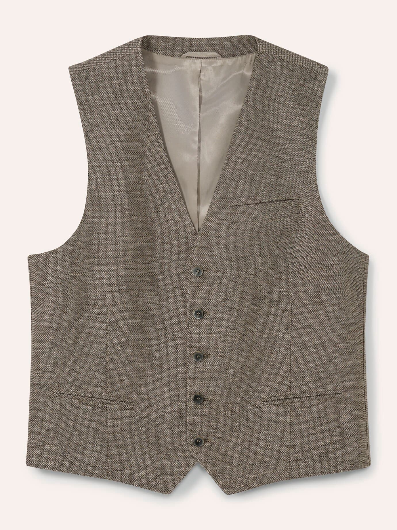 Walbusch Herren Reiseleinen-Weste Beige noch offen: Muster