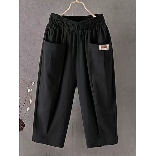 Per donna Culotte Gamba Larga Chinos Vacanza Moda Streetwear Lunghezza al polpaccio Vita Alta Semplice Tasca Fascia Elastica Comodo Comodità Morbido Elasticizzato All'aperto Streetwear Blu Nero