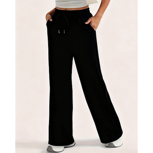 Per donna Gamba larga Chinos Vacanza Streetwear Casual Lunghezza intera Vita media Semplice Tasca Elastico in vita Confortevole Micro-elastico All'aperto Vacanza Streetwear Nero Grigio Autunno
