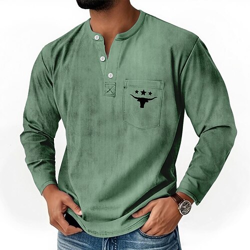 Per uomo Grafico Vintage Maglia Henley Maglietta Manica Lunga Retrò Vintage Casual Casuale Primavera Autunno Tutte le stagioni Blu Verde Viola Cachi Henley Maglietta Henley
