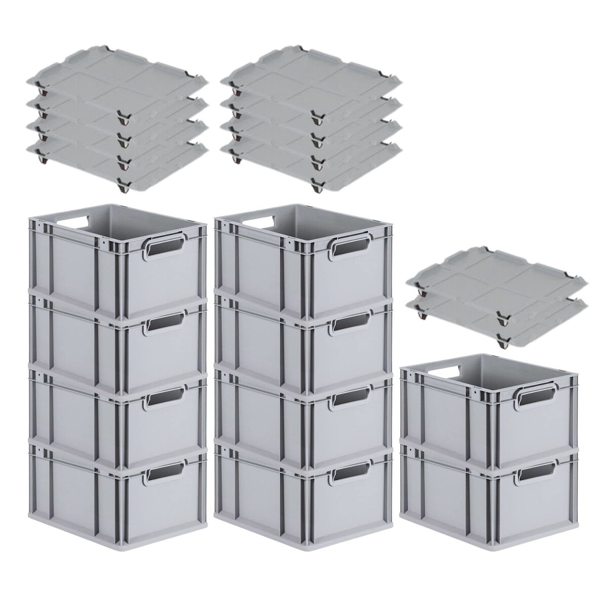 PROREGAL SparSet 10x Eurobox NextGen Grip mit Auflagedeckel & 4 schwarzen Verschlüssen, HxBxT 22x30x40cm, 20L, Grau, Griffe offen, Eurobehälter