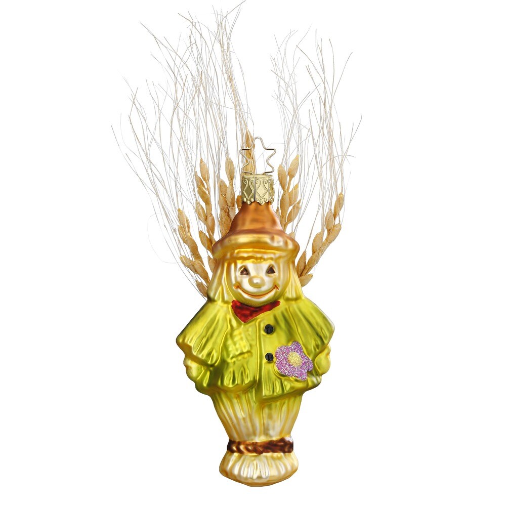 INGE-Glas Manufaktur Christbaumschmuck Vogelscheuche 11,5cm - Glas Figur Mundgeblasen & Handbemalt Weihnachtsbaum Anhänger Weihnachten Christbaumanhänger Grün Gelb