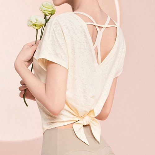 Per donna Tinta unita Maglietta da allenamento T-shirt Fitness Morbido Elastico Traspirante Tennis Pickleball Yoga Girocollo Top Bianco Giallo Rosa Abbigliamento da tennis