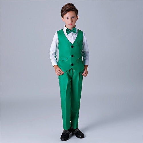 Completo da fedi nuziali per bambini, 4 pezzi camicia pantaloni da ragazzo, abito formale, casual, da esterno, da festa, alla moda, cool, basic, tinta unita, blu, nero, bianco, nylon