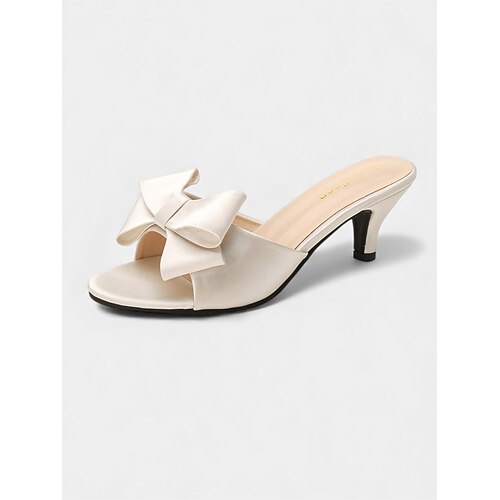 Scarpe eleganti da donna con tacco a spillo, fiocco rosa cipria, punta affilata e strass per appuntamenti di San Valentino