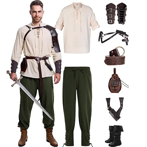 Retrò Vintage Medievale Rinascimento Pantaloni Costume Cosplay A stivale Costume Per uomo Vichingo Fantasia Halloween Carnevale Mascherata Carnevale Performance LARP Adulti Camicia Pantaloni Cintura
