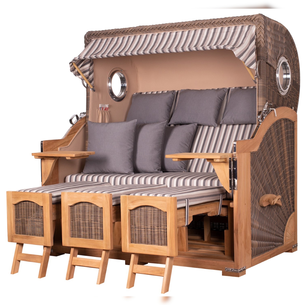 Mr. Deko Strandkorb Komplettset - bene living - Ammersee Grande XL Teak - PE grau - Modell 548 - inkl. Liftersystem