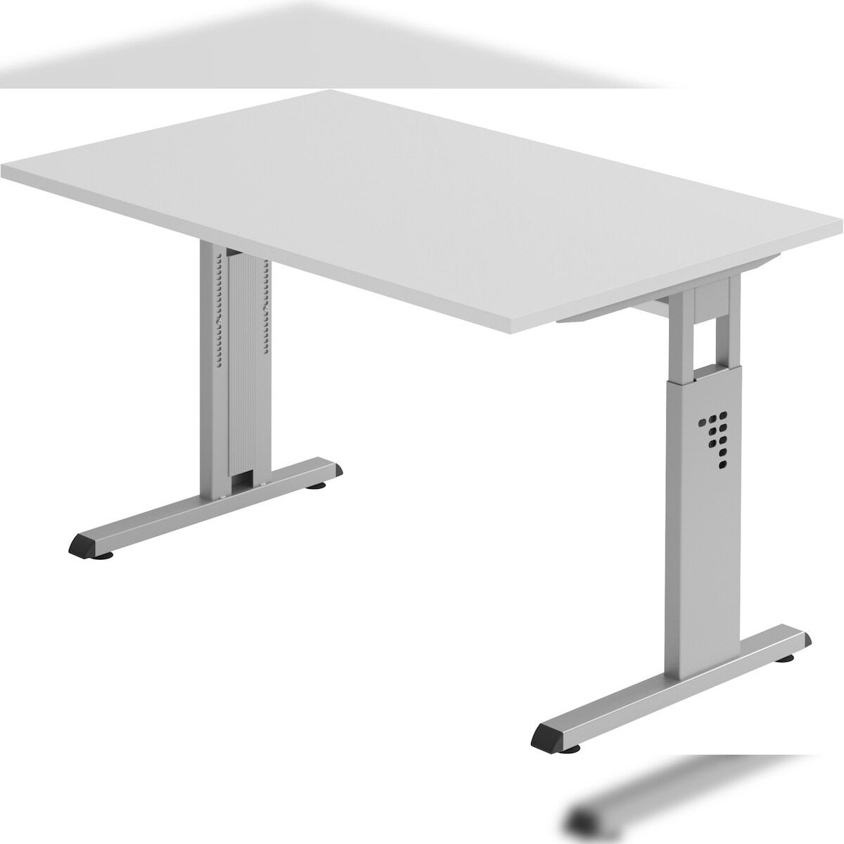 bümö höhenverstellbarer Schreibtisch O-Serie 120x80 cm in grau, Gestell in Silber - PC Tisch klein für's Büro manuell höhenverstellbar, Computertisch