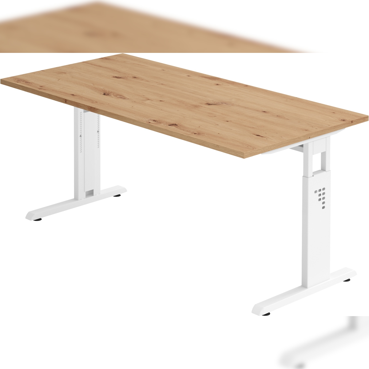 bümö höhenverstellbarer Schreibtisch O-Serie 160x80 cm in Asteiche, Gestell in weiß - PC Tisch für's Büro manuell höhenverstellbar, Computertisch