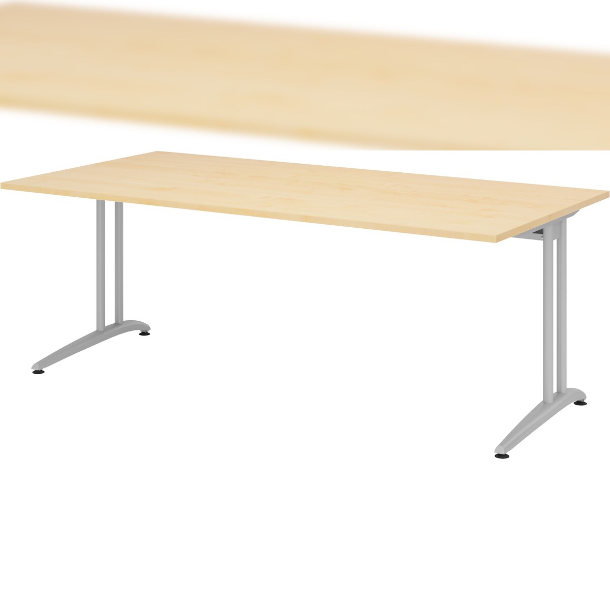 bümö Schreibtisch groß, B-Serie 200x100 cm, Tischplatte aus Holz in Ahorn, Gestell aus Metall in Silber - PC Tisch, großer Computertisch für's Büro,