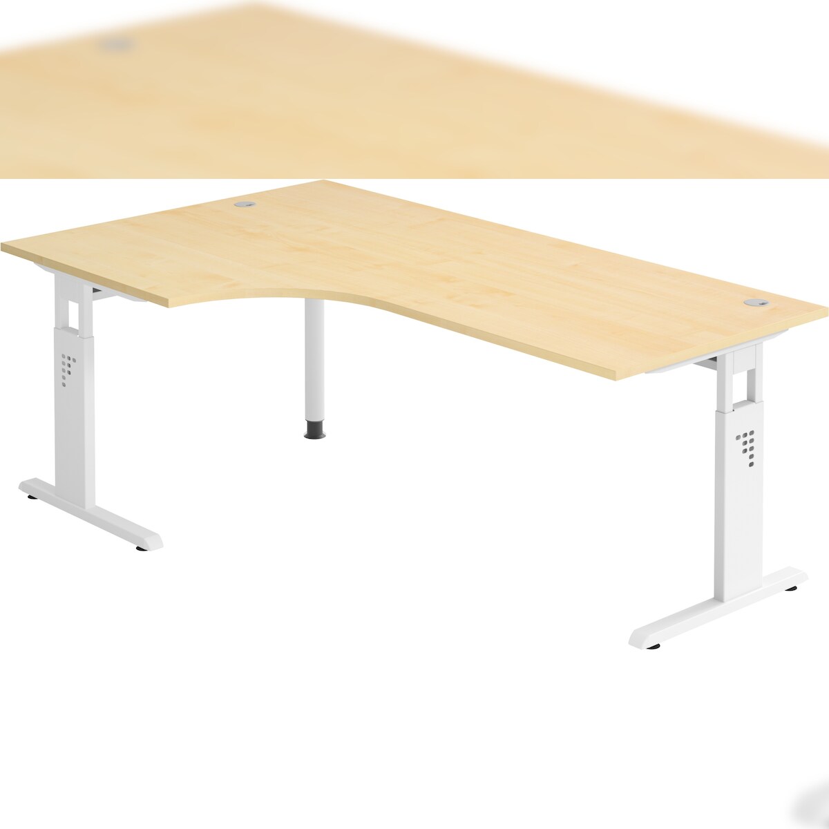bümö höhenverstellbarer Eckschreibtisch O-Serie 200x120 cm in Ahorn, Gestell in weiß - Schreibtisch L Form, großer Tisch für's Büro, Computertisch