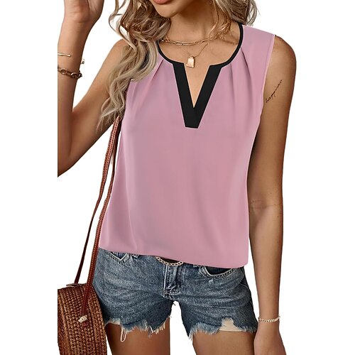 maglietta da donna color block casual senza maniche scollo a V top normali tutti i giorni per uscire fine settimana patchwork nero bianco rosa estate primavera