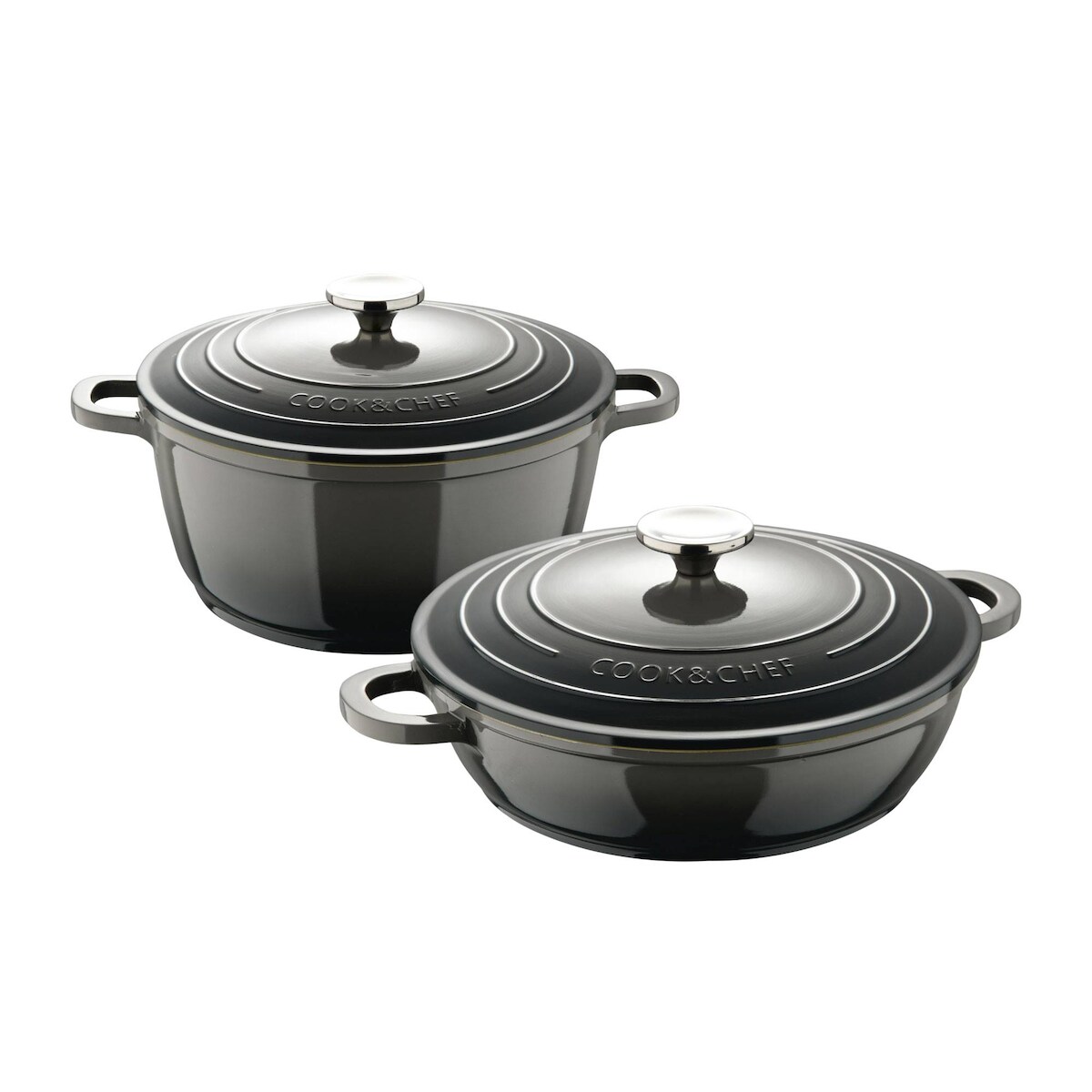 BERGNER Excalibur - Set bestehend aus Kasserolle Ø 20cm (2,4 l) und flacher Kasserolle Ø 24cm (2,3 l) in Aluminiumgussgrau