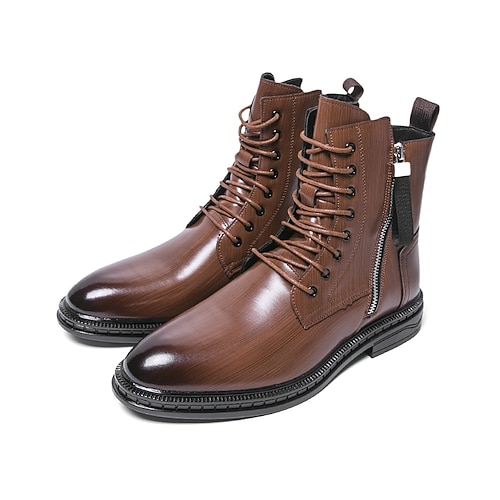 stivali casual alti da uomo in similpelle marrone con suola in gomma antiscivolo – scarpe da passeggio resistenti per escursioni, viaggi e uso quotidiano