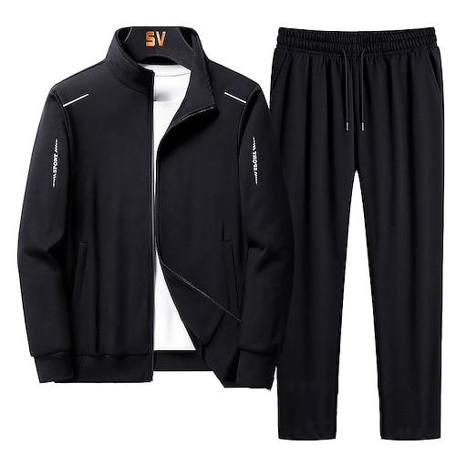 Per uomo Giacca con cerniera Tuta da 2 pezzi Pantaloni sportivi da tuta con tasca Tinta unita Completo Abbigliamento Primavera Nero Blu Palestra Escursionismo Allenamento Leggero Traspirante Manica