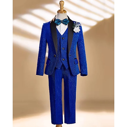 abito da portatore di fedi, abito da bambino, blazer gilet pantaloni camicia cravatta ragazzo abito formale casual esterno festa moda cool basic tinta unita paillettes tasca bottoni blu