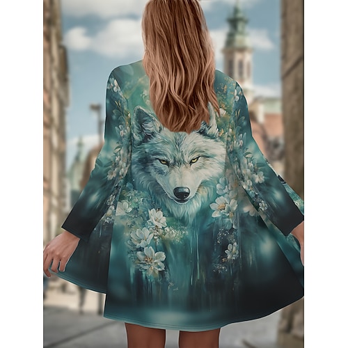 Per donna Cappotto Invernale Trench Leggero Confortevole Stampato Aperturaanteriore Vintage Moda Casual Boho Vintage Animale Vacanza Casuale Regolare Lungo Senza colletto Vestibilità regolare Manica