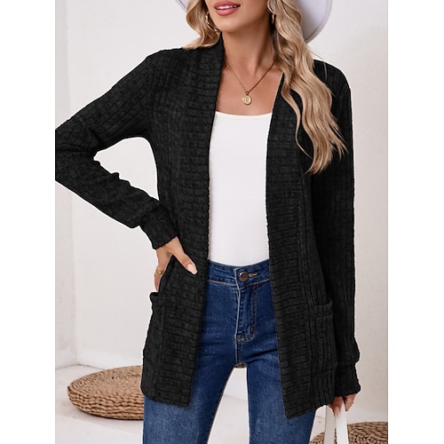 Per donna Felpa Cardigan Elegante Moda Streetwear Colore Puro Aperto davanti Tasca Lavorato a maglia Manica Lunga Top Regolari Maglia All'aperto Quotidiano Weekend Nero Vino Autunno Inverno