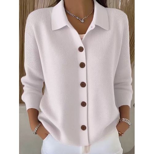 Per donna Felpa Elegante Casual Morbido Colore Puro A Coste Colletto a Camicia Lavorato a maglia Manica Lunga Top Regolari Maglia All'aperto Quotidiano Weekend Nero Bianco Primavera Autunno