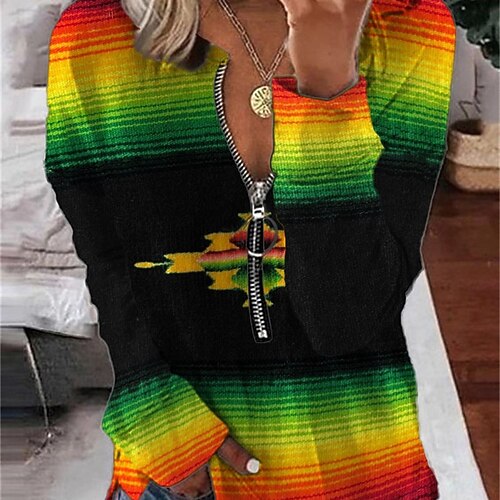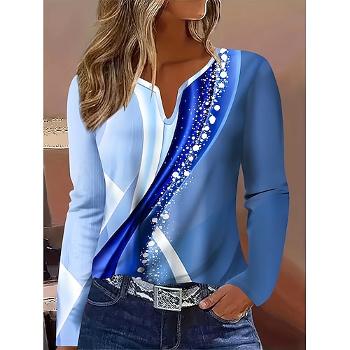 Per donna Maglietta Ombre Grafico Geometrico Vintage Elegante Classico Manica Lunga Scollo a V Collo a V Top Regolari Quotidiano Weekend Stampato Blu Arancione Primavera Autunno Inverno