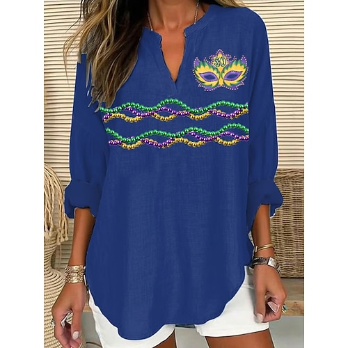 Martedì grasso Per donna Camicia Grafico Vintage Quotidiano Elegante Manica Lunga Scollo a V Top Regolari Quotidiano Ferie Stampato Blu Nero Bianco Giallo Viola Estate Primavera