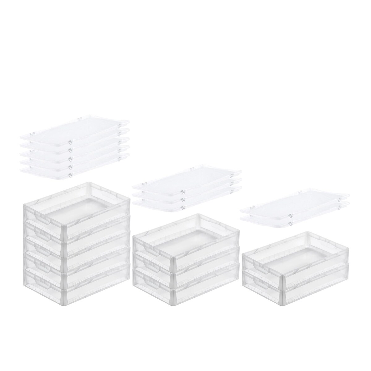 PROREGAL MegaDeal 10x Transparenter Eurobehälter LightLine mit offenem Griff und Scharnierdeckel | HxBxT 12x40x60cm | 24 Liter | Eurobox
