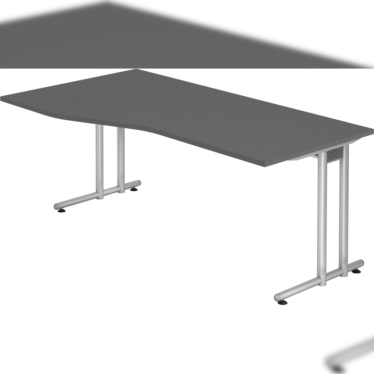 bümö Schreibtisch groß, N-Serie 180x100 cm, Tischplatte aus Holz in graphit, Gestell aus Metall in Silber - PC Tisch, großer Computertisch für's