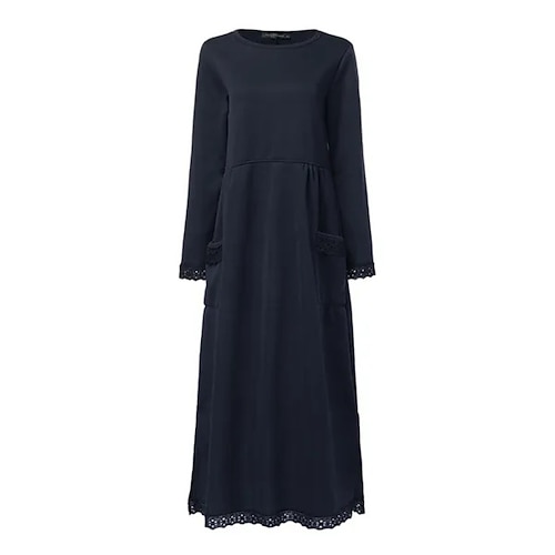 Per donna Abito maxi Finto cotone e lino Vestito Casual Vestito a ruota Casual Quotidiano Vestibilità regolare Floreale Manica Lunga Girocollo Blu Blu marino Verde Primavera Autunno