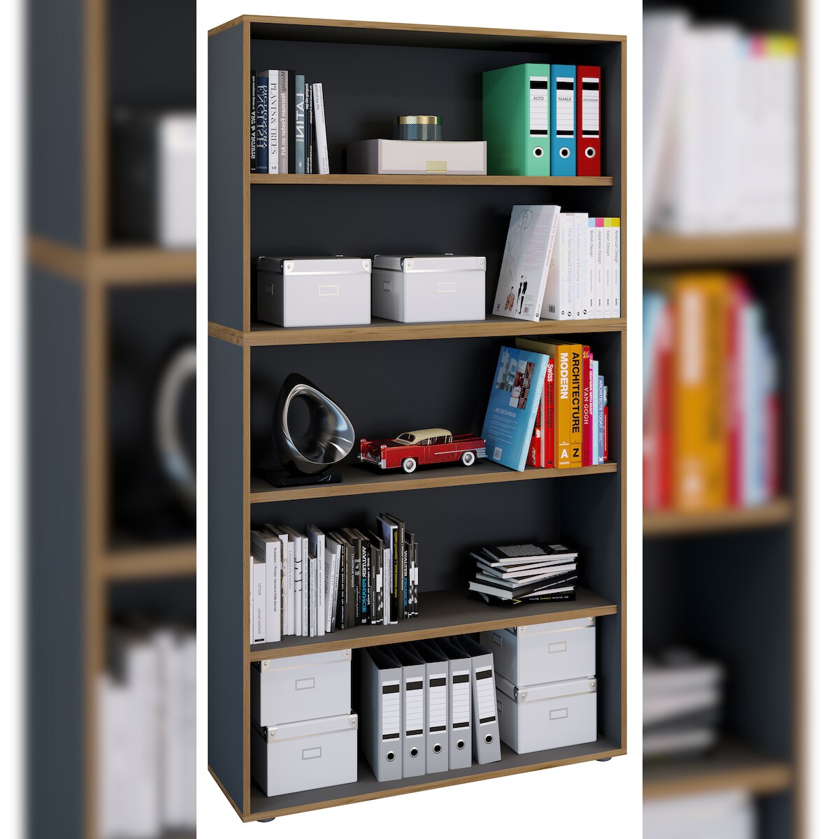 VCM Büroregal & Bücherregal Salia Anthrazit B. 100 x H. 183 x T. 33 cm