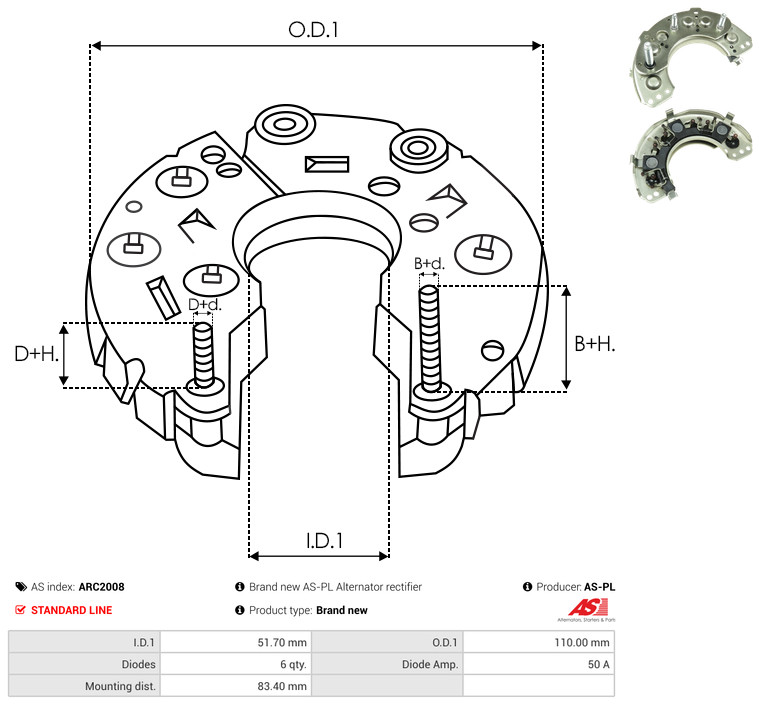 AS-PL Gleichrichter, Generator ARC2008 Universal 110,00mm