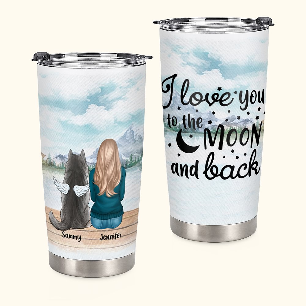 Personligt I Love You to the Moon and Back-glas i rostfritt stål med namn Perfekt födelsedagspresent för hundälskare