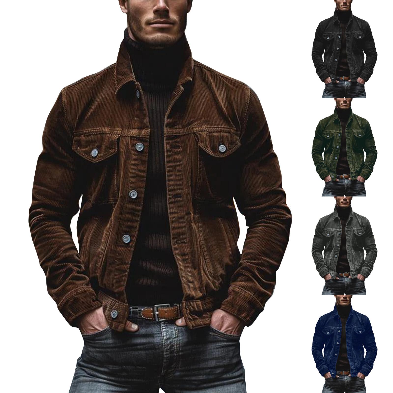 Men's Striped Corduroy Casual Loose Button Lapel Long Sleeve Jacket cm blue