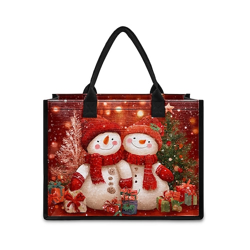 Borsa tote da donna con stampa di pupazzo di neve natalizio, borsa a tracolla in tela di grande capacità, borsa per lo shopping natalizio da donna