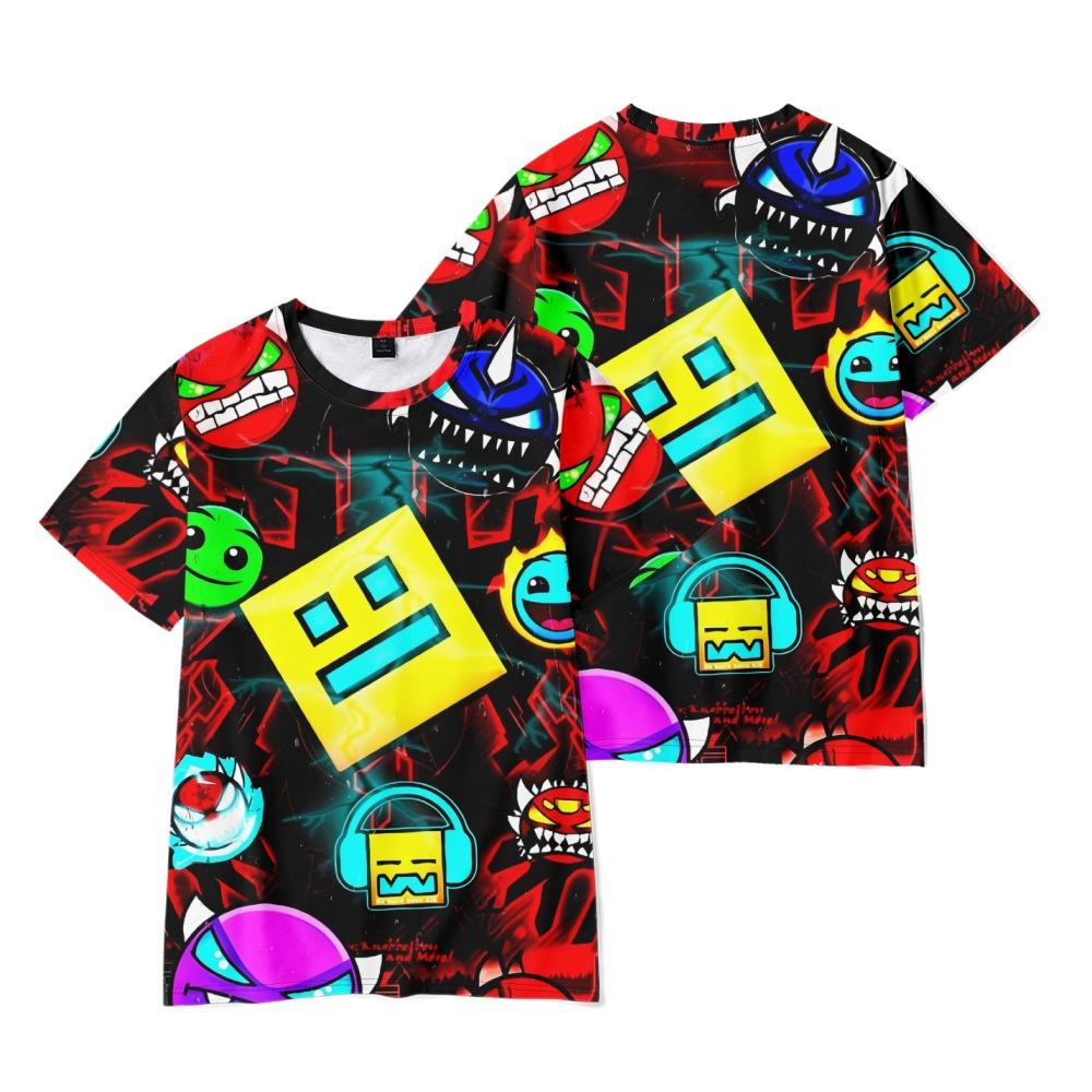 Geometry Dash Anime Trykt T-skjorte Menn Kvinner Avslappet Rund Hals Kort Erme Barn Morsom Trendy Unisex T-skjorter Topper cm