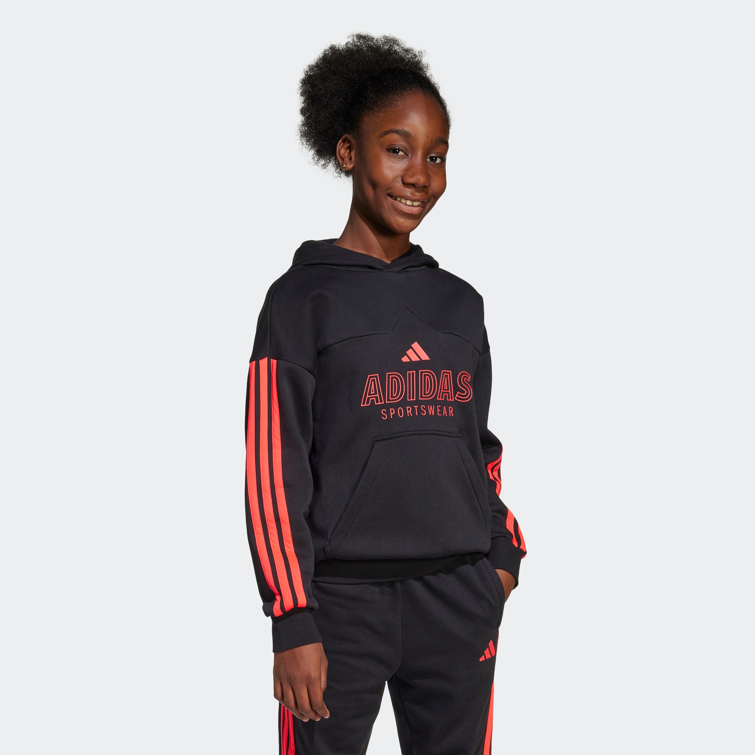 Sporthose ADIDAS SPORTSWEAR "ESSENTIALS KIDS", Mädchen, Gr. 128, N-Gr, schwarz-weiss (schwarz, weiß,), Obermaterial: 70% Baumwolle, 30% Polyester, Hosen Sporthose, sportlicher Stil, für Kinder, aus Baumwolle und Polyester schwarz, weiß, 128, N-Gr