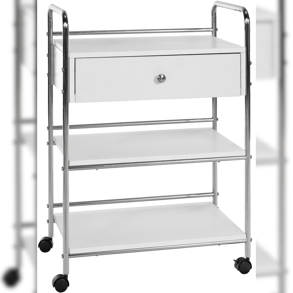 DELUKE® Rollwagen Beistellwagen mit Rollen KLIA Schublade & Ablagen Metall Gerätewagen mobil Salonwagen Küchenwagen Servierwagen Kosmetikwagen, Weiß