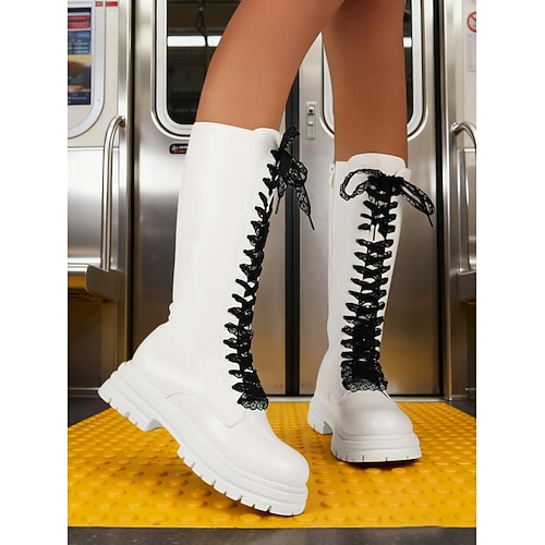 stivali da combattimento stringati da donna con suola spessa e dettagli in pizzo: stile punk rock per l'uso quotidiano, le uscite quotidiane e la moda di strada