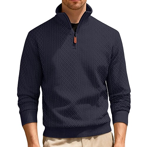 Per uomo Maglione Maglia Top Regolari Mezza cerniera Righe Semplice Colletto Mao Cool Maglione Scuola Vacanza Abbigliamento Primavera Autunno Nero Blu marino scuro S M L