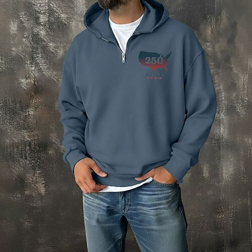 Per uomo Felpa con cappuccio Maglione Felpa con cappuccio e zip corta Blu Nero Vino Blu marino Cammello Con Cappuccio Bandiera Americana Tasca Stampato Quotidiano Sport Outdoor Sportivo Streetwear