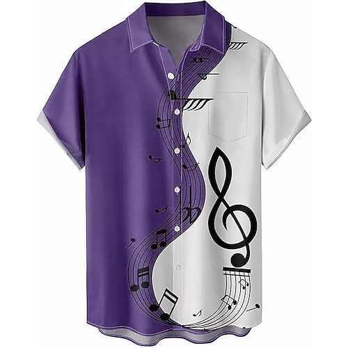 Per uomo Note Musicali Camicia Camicia Estiva Camicia con Bottoni Manica Corta Moda Casual Quotidiano Festival Musicale Estate Primavera Collo ripiegato Stampa 3D camicie con colletto Una tasca
