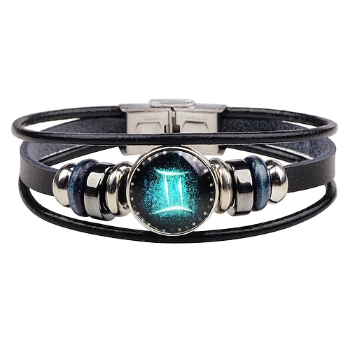 bracciale in pelle da uomo 12 costellazioni vintage punk nero zodiac rock gioielli braccialetto hip-hop