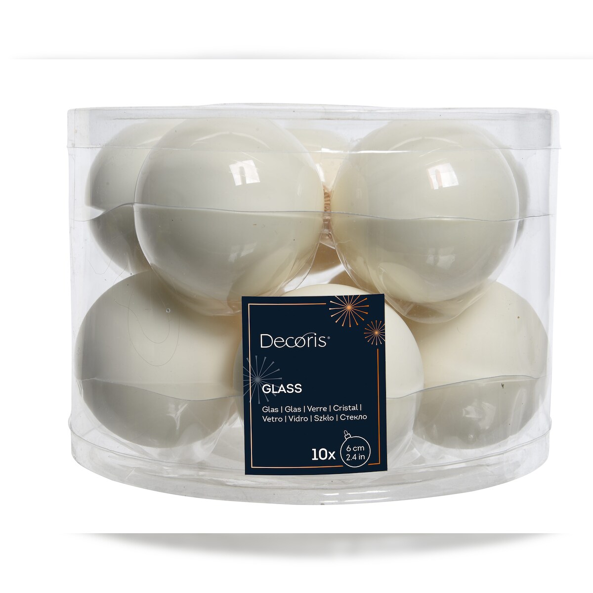 10 Weihnachtskugeln 6cm Glas uni Christbaumkugeln matt glänzend elfenbein ivory