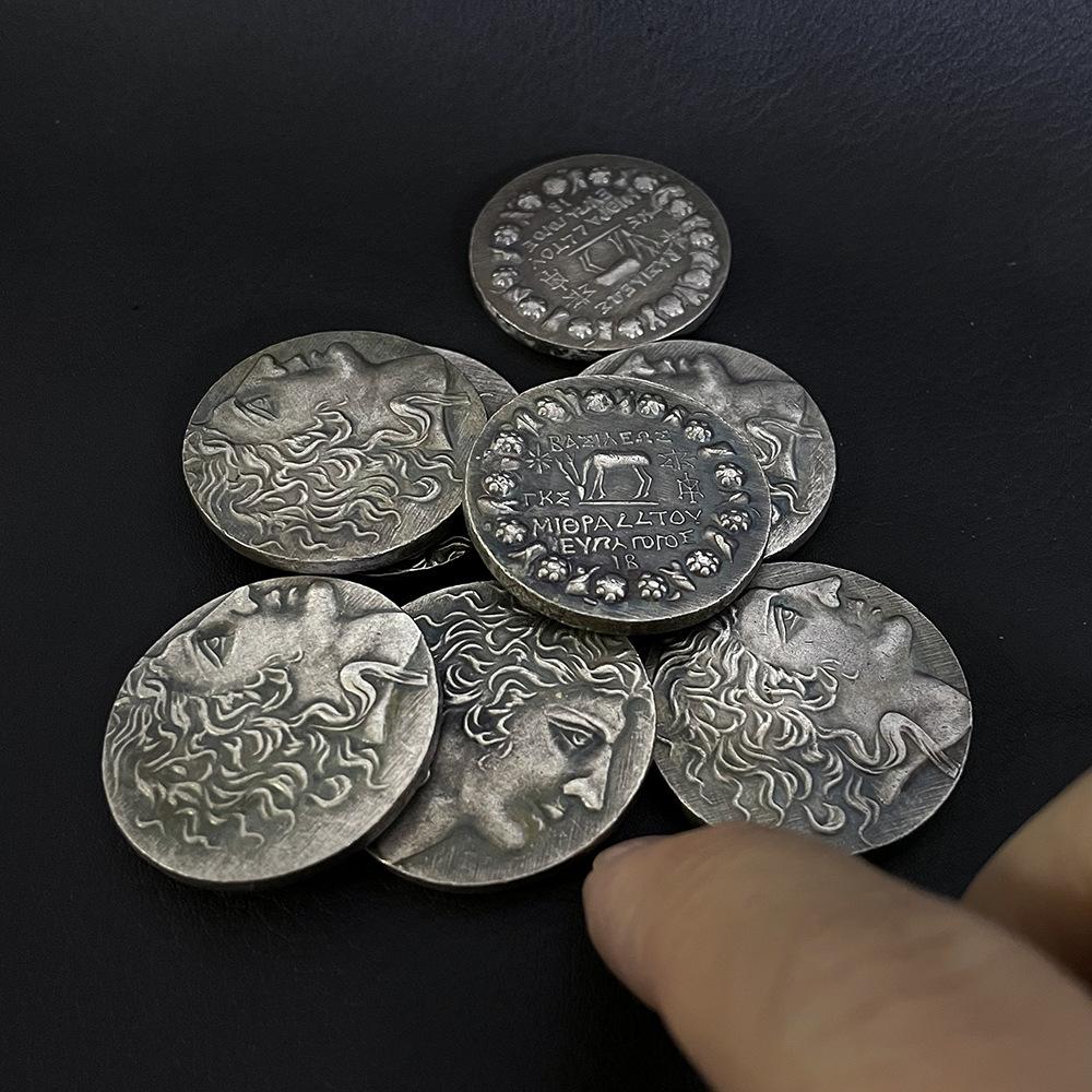 Antike griechische versilberte Münzen, König Mithridates der Hauptstadt, Reliefs, Hirschmünzen, Ringzubehör, Anhänger, Handarbeiten