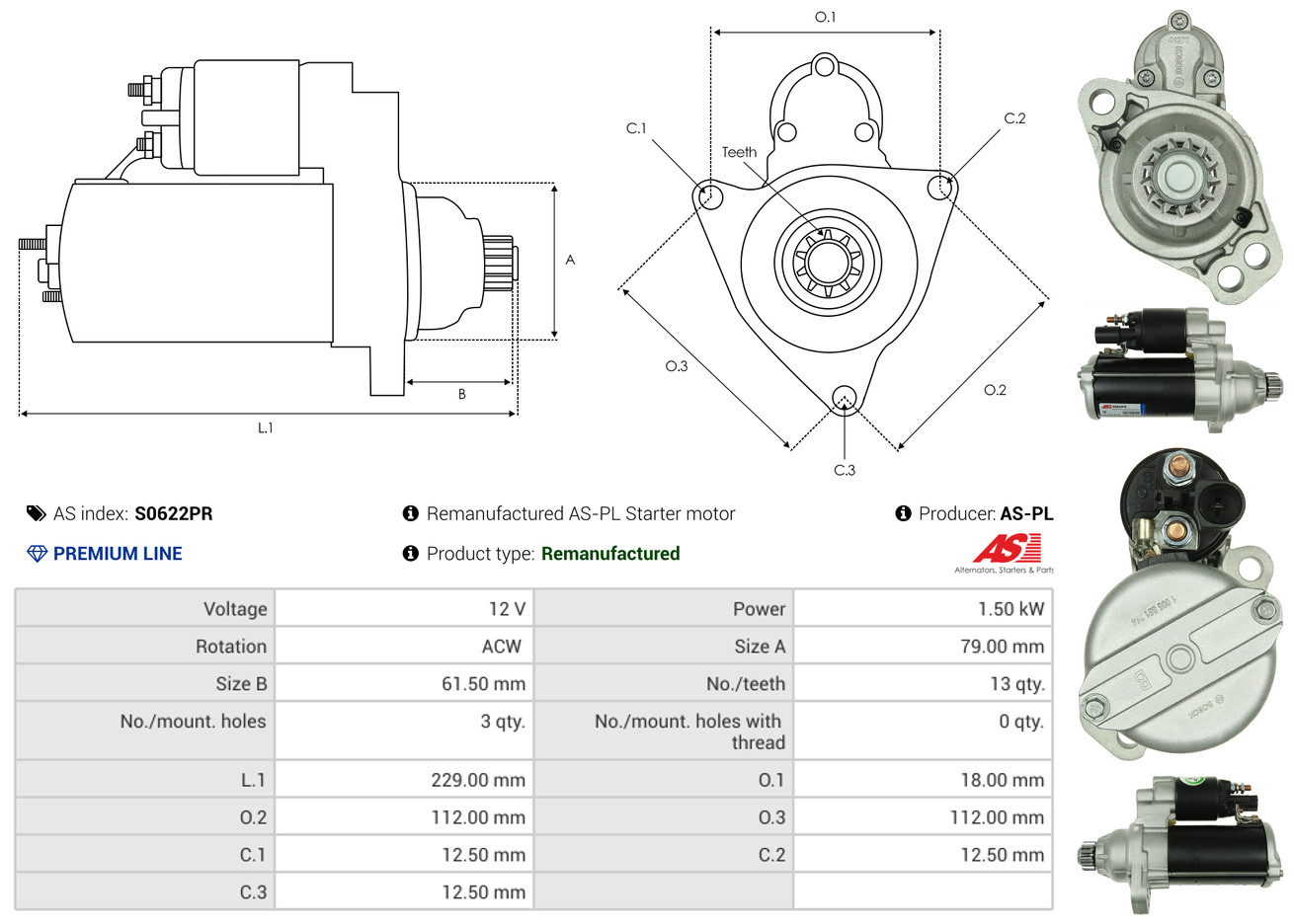 AS-PL Starter S0622PR 12V für VW 02M911024J 02M911022F 02M911024QX